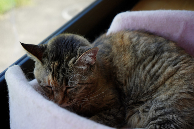 エアコンの風の当たらない思い思いの好きな場所で、そこそこ快適そうに過ごす猫たち。