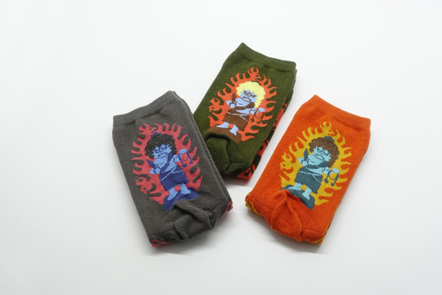 1か月ほど前に放送された「奈良ふしぎ旅図鑑」のおかげで、仏下「邪鬼ソックス」の売れ行きは好調だったのですが、残念ながらそのタイミングでこちらのお不動ソックスは品切れしておりました。